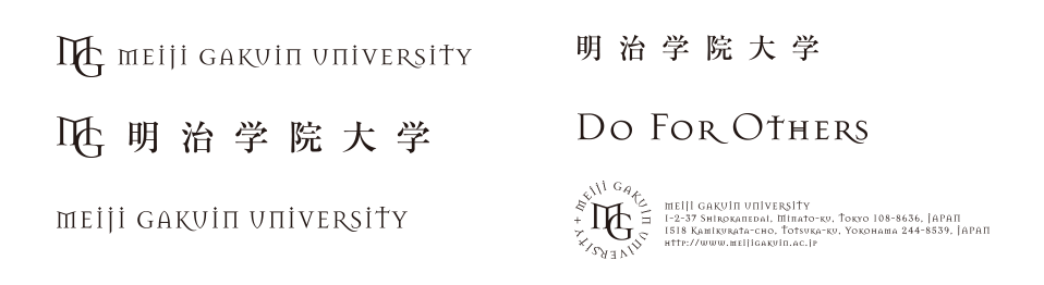 ロゴ・タイプとはデザインされた文字のこと。 明治学院大学はシンボル・ロゴと同じ書体で整え、イメージの統一を図りました。 単独で使用してもシンボルのイメージは保たれます。