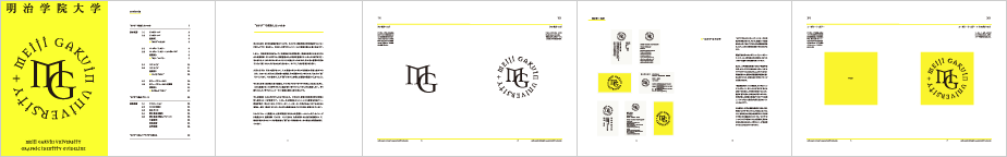 「MG」のシンボル・ロゴを「Meiji Gakuin University」で囲むことで、大学のマークとして浸透しやすい形になります。