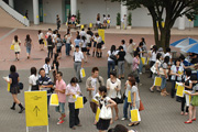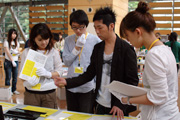 オープンキャンパスに1500人超が来場。佐藤氏デザインによるDMを持参する来場者が目立った。次回は来場者に、MGロゴの入ったミネラルウォーターを配布することに。