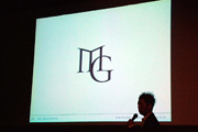 ロゴ選定委員会で、佐藤氏がMGのロゴマーク、スクールカラー(イエロー)のプレゼンテーションを行い、その案が委員全員の賛成をもって承認される。