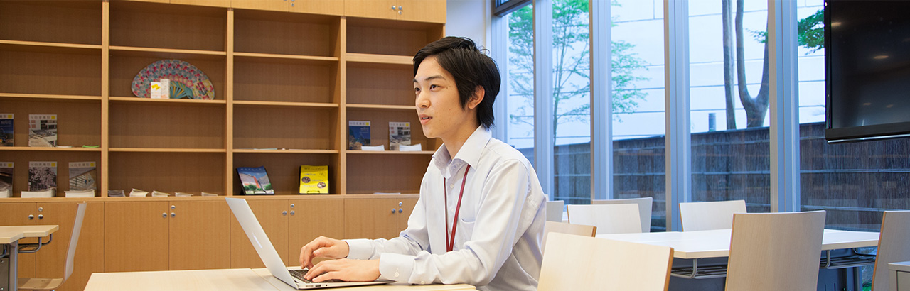 今は、リーダーとしてコンシェルジュ全体の取りまとめを任されています。大学職員の方と業務に関する連絡や業務の課題について相談や提案をしたりすることもあります。最初は、アルバイト感覚でしたが、今はインターンシップに近いと感じています。この仕事を通じて、ビジネスメールの書き方を覚えましたし、社会人の方との接し方も身につきました。あとは、質問に答えるために、僕自身が大学についてだいぶ物知りになって、大学を活用できるようになったと思います。