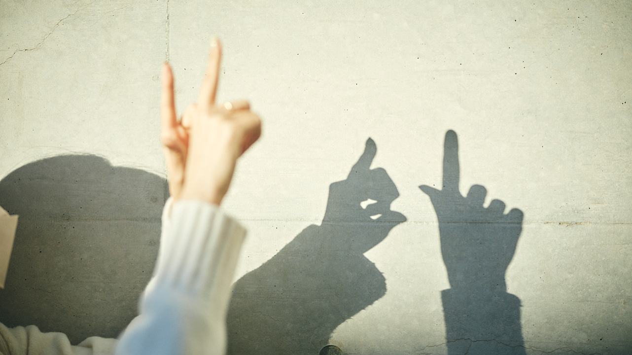 どうすれば表現できるか結構悩みましたが、光明をもたらしてくれたのが手話です。きっかけは、手話で楽しそうに会話する友人たちの姿を学生サポートセンターで見かけたことです。表情豊かな手話でのやりとりに衝撃を受けました。無音ですから、わからないことはわからないとすぐに伝えなければいけませんし、いわゆる「間を読む」といったやりとりも生じません。ランチタイムではランチが摂れなくなるほど手話に夢中になります。手話に出会って、日本語や英語など発話を必要とする言語と比較する観点で向き合い、「今まで出会ってきた中で一番面白い言語だ」と思いました。