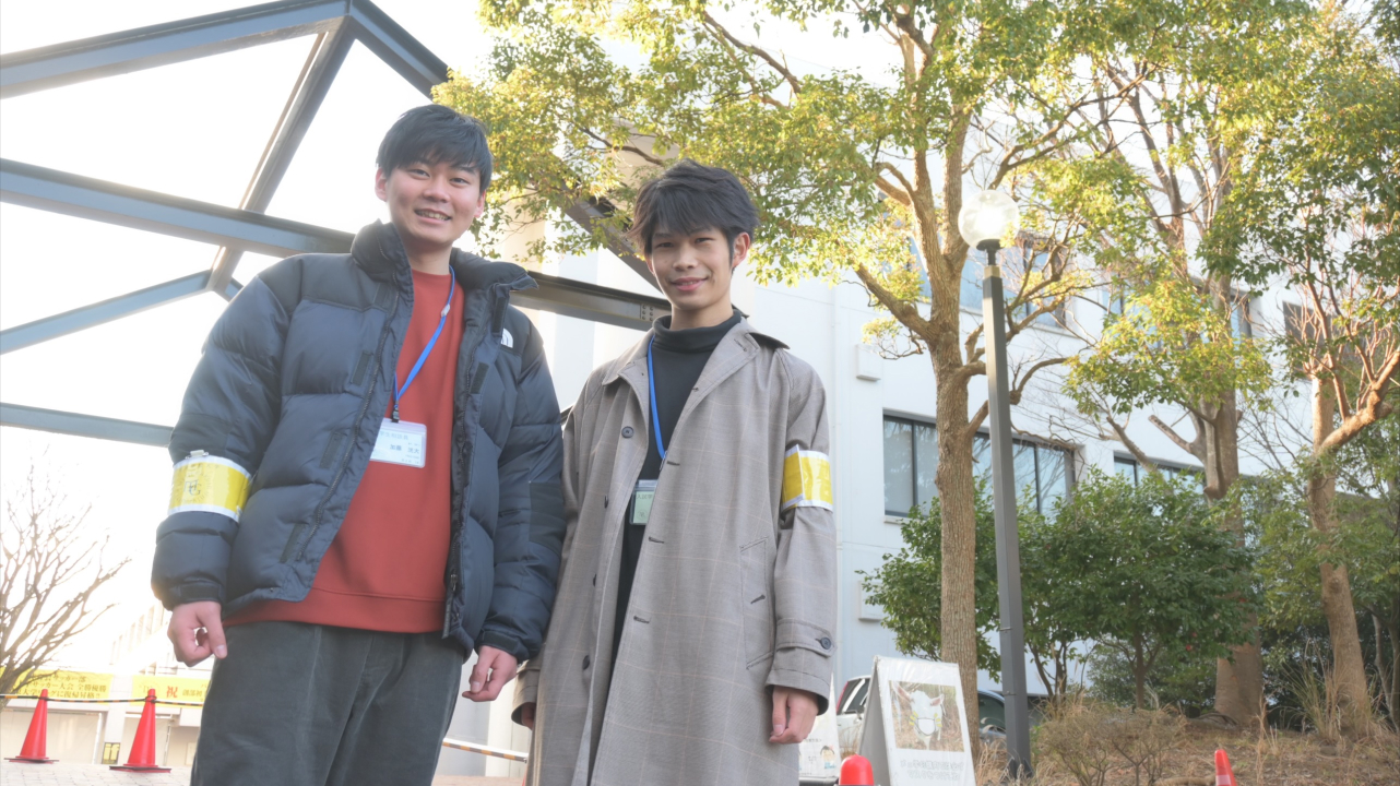 毎年、整理班として学生の誘導などを担当しています。初めてキャンパスに来る受験生を案内するので、一人ひとりすれ違ったら挨拶し、不安そうな人がいたら寄り添い、リラックスできるように意識しています。誘導には、普段の生活では使うことのないトランシーバーが必須アイテムで、この業務で初めて使いました。