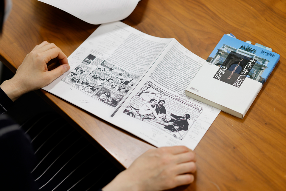 明学は先生と学生の距離が近いのも特色のひとつ。授業の後に質問をしに行ったり、研究室を訪ねたり。フランス現代思想や記号論に基づく芸術学を教えてくださった故・宇波彰先生、地道な史料読解に基づきつつ、自分の目で作品を観察する大切さを教えてくださった日本美術史の山下裕二先生をはじめ、お世話になった先生は数え切れません。なかでも一番の恩師といえる存在が、鈴木杜幾子(ときこ)先生。フランス近代を中心とする西洋美術史とジェンダー論をご専門とし、『フランス革命の身体表象 ジェンダーからみた200年の遺産』(東京大学出版会)など多くのご著作で知られる美術史家でいらっしゃいます。4年間、鈴木先生の指導を受けられたことは大きな財産です。