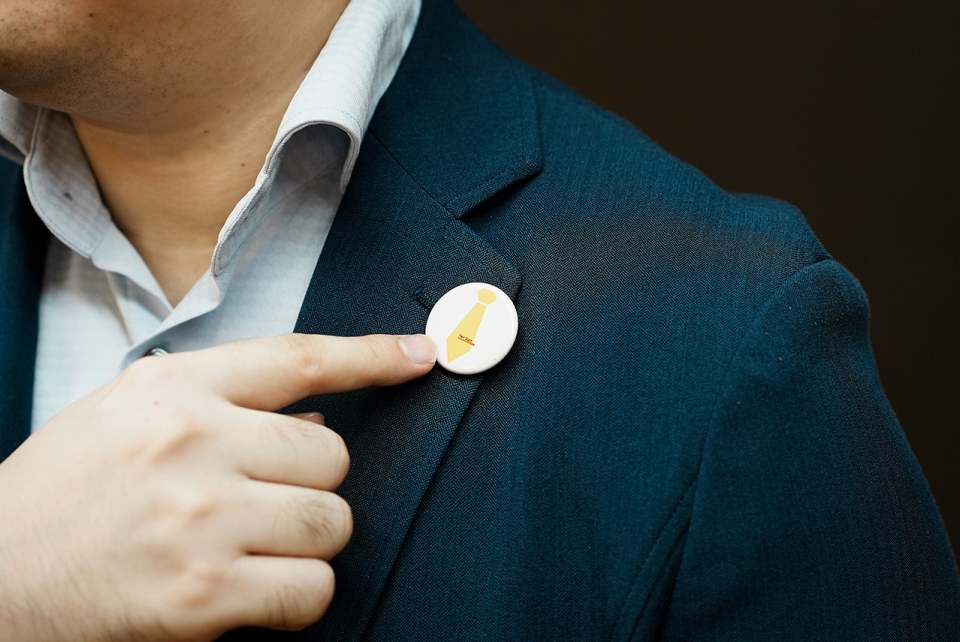 「親を頼ることなく若くして自立する子どもたちの就労を応援しよう」というメッセージが込められたフェアスタートサポートの啓発バッジ。「コーポレートカラーのオレンジと、はたらく人をイメージするネクタイを組み合わせました」(永岡さん)私が起業を決意するまでには、リクルートでの営業経験や、就職支援会社の立ち上げに参画したこと、児童養護施設での出会いなど、それまでのさまざまな出来事が関係していますが、振り返ってみると、大学1年生の時に「明治学院生協学生委員会」の復活に挑戦したことから、とても大きな影響を受けていると思います。