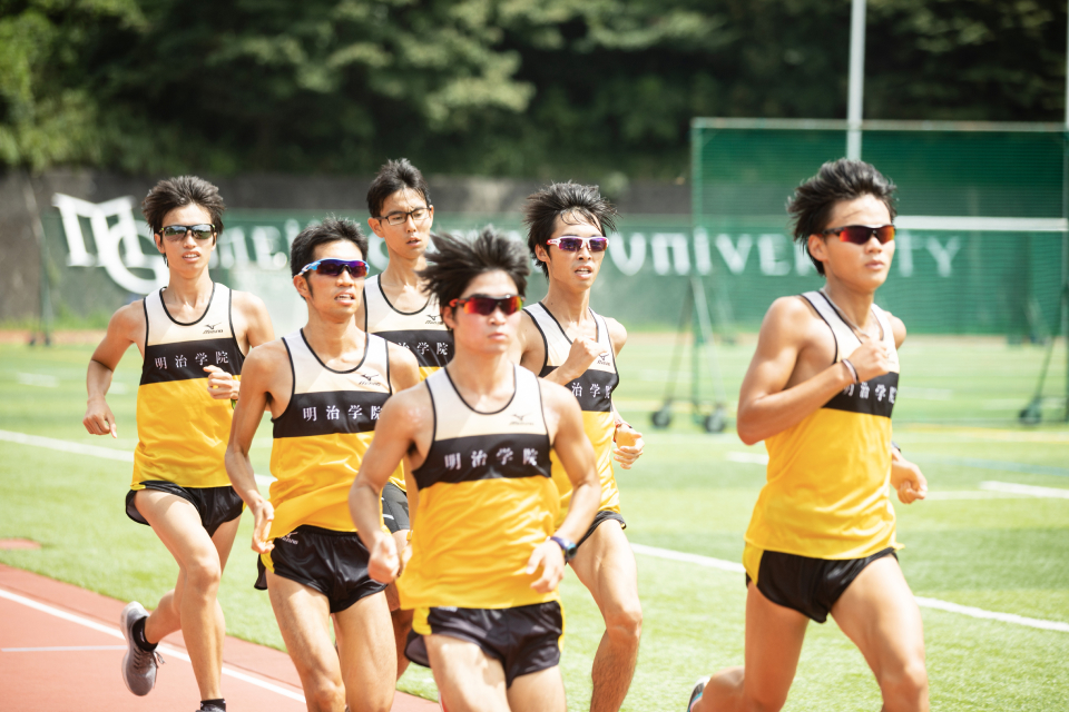 10月の箱根駅伝予選会を控えた9月、横浜キャンパスヘボンフィールド。部の練習開始を前に、誰よりも早くアップを始める坂上の姿があった。「記録、コンディション共に入学当時と今では雲泥の差。4年間で過去最高の仕上がりです」と自信をのぞかせる。明治学院からの初めての駅伝ランナーとなった前主将から「たすき」を託された主将の想いとは。