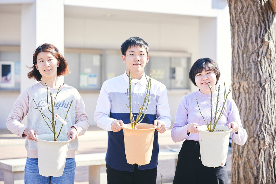 2022年1月20日、代表を務めるPeace☆Ringが主体となり、横浜キャンパスで「ICAN」(アイキャン)という品種のバラを5株植樹しました。「ICAN」は広島で被爆されたバラ育種家の田頭数蔵さんが作った新種のバラです。2017年に核兵器禁止条約が国連で採択され、貢献したNGOの「ICAN」(核兵器廃絶国際キャンペーン)がノーベル平和賞を受賞しました。そのことに心を動かされ、名付けられたそうです。