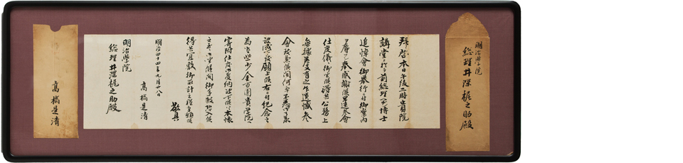 ▲高橋是清が送ったヘボン博士追悼会を公務のため欠席する旨を伝える手紙
