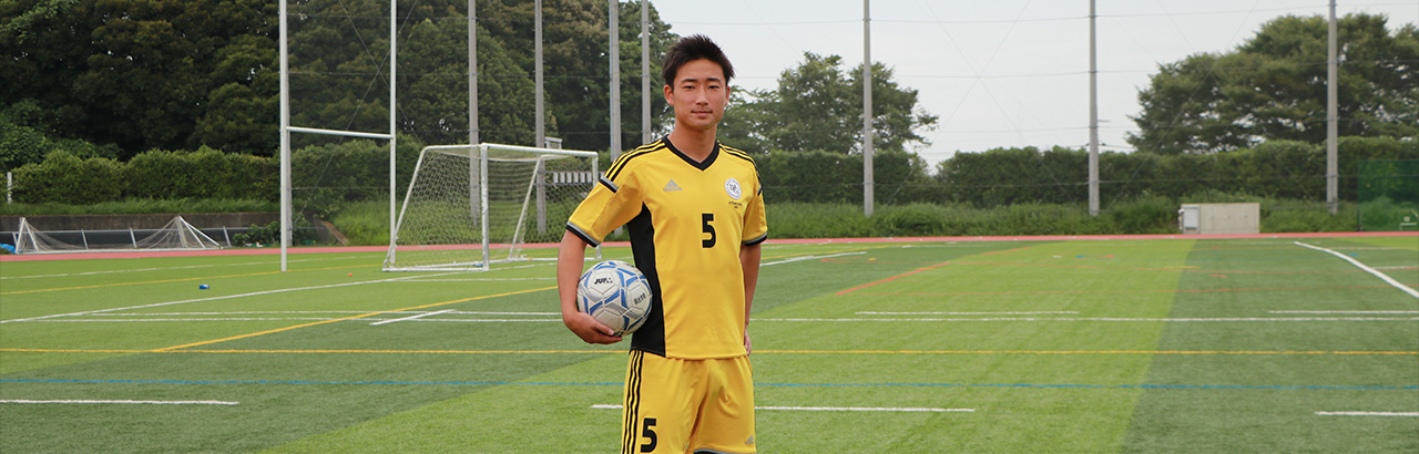 「社会貢献がしたい」との強い思いから、社会福祉学科に入学。文武両道を実践し、1年次(2015年)よりAチームレギュラーメンバーとして活躍。2018年2月より主将に着任し、約200名いる大所帯を率いる。ポジションはDF。好きなサッカー選手は大津祐樹選手。