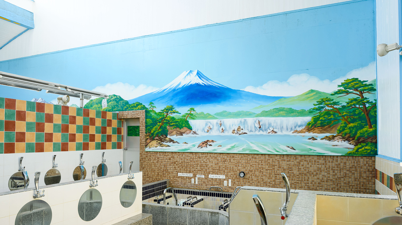 タイアップのペンキ絵だけでなく、銭湯のご主人からリクエストされることもあります。「ペンキ絵の中にご当地キャラクターを入れてほしい」とか、「地元の名所を描いてほしい」とか。リクエストには喜んで応えています。