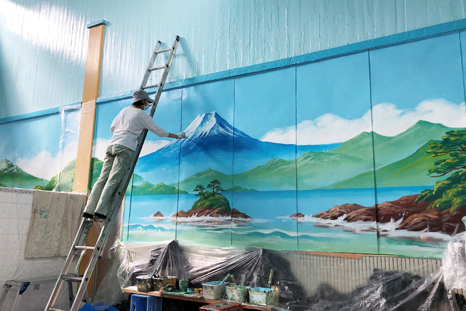 年々、銭湯の数は減少しています。ペンキ絵製作の仕事も昭和より減っているようですが、銭湯ペンキ絵の社会との関わり方を探りつつ、私は描き続けられたらと思っています。お客さまから「あなたの絵を見ていると、心が安らぐんだよ」と言われるとうれしいですから。