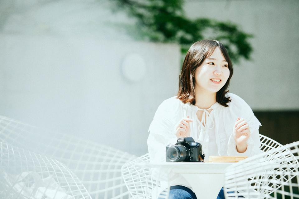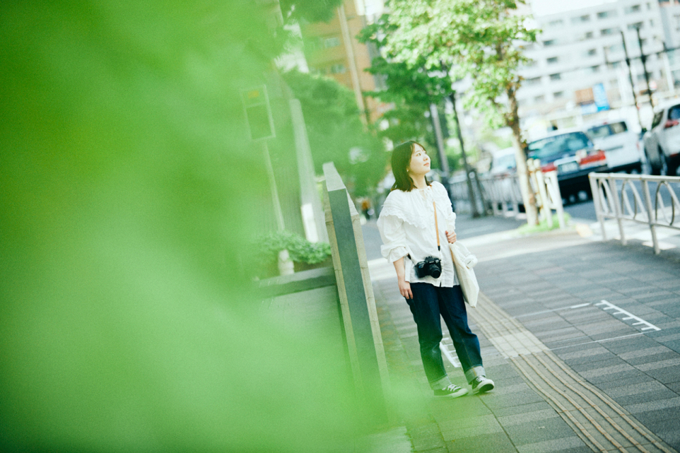 九州の大学でグラフィックデザインを専攻していたが、2022年、明治学院大学文学部芸術学科に編入学。平日は通学風景、休日は自宅や散歩道に東京の名所など、「今しかないこの瞬間」をカメラに収める日々を過ごす。趣味は大学ポータルサイト(ポートヘボン)の記事チェック。好きな言葉は「しんどくない幸せをねがってる」。等身大の幸せを願う自分自身の気持ちをあらわした言葉で、学内のキャンペーンでも入選した一言。