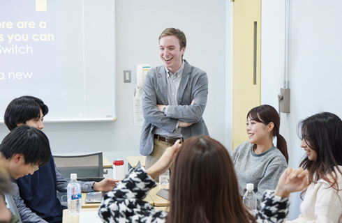 新卒一括採用や年功賃金、終身雇用などの日本的雇用慣行は過去のものになったという人もいますが、まだまだ健在だという人もいます。このゼミでは日本と外国の企業の経営や組織文化を比較し、日 本人と外国人のキャリア観やコミュニケーション様式の違いを分析します。並行して企業会計や労働法、表計算ソフトの活用法など、卒業後に役立つ知識やスキルを広範に学び、社会人になる基礎力を身に付けます。さらにグループで学外の社会人を取材し、聴く力と伝える力を養いつつ、自らの進路を模索する材料とします。卒業生との連携を密にし、人生の一歩先を歩んでいる先輩から学ぶ機会を随所に設けているのもこのゼミの特徴です。