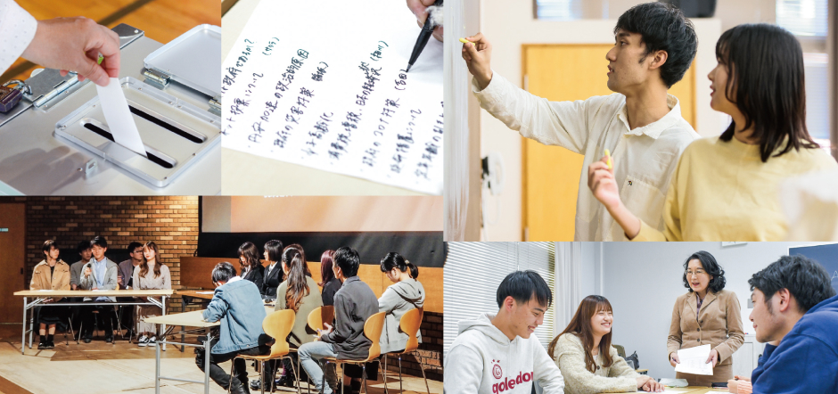- 各学科の専門分野に関する、各種講義、入門・基礎・専門演習(ゼミ)、フィールドワーク、実習、海外研修・留学などを通じて、社会や世界で生起する様々な法的・政治的な問題を比較・分析し、または課題を発見し、それらの問題・課題を解決する能力、類似・同種の問題にその解決策を活用・応用できる能力、そしてこれらの解決策および自らの意見を他者に論理的にかつ説得力をもって伝達できる日本語または英語でのコミュニケーション能力を身につけること(課題等発見・解決能力、汎用的技能およびコミュニケーション能力の習得)。