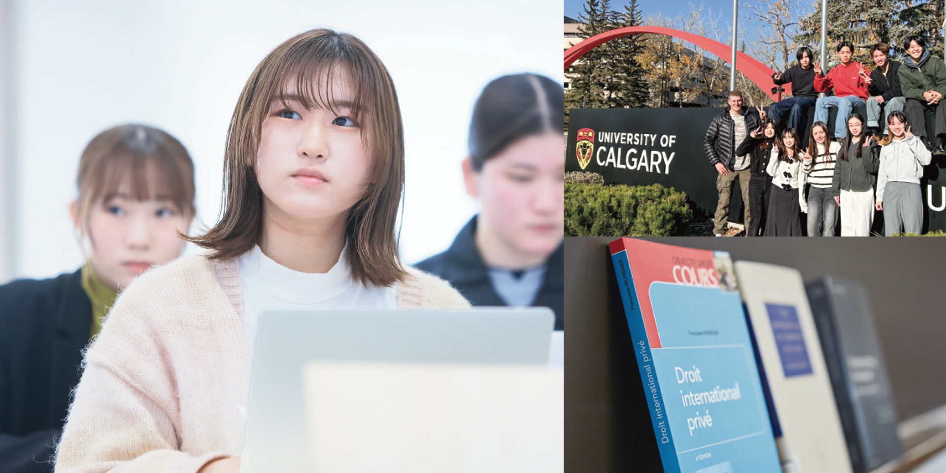 2024年度に実施された学科独自のカリキュラム留学では、2年生がイギリス(リーズ)、アイルランド(ダブリン)、オーストラリア(アデレード)、カナダ(カルガリー)の4カ国の大学に留学しました。4~5カ月にわたって英語や現地の法律を学ぶとともに、多様な社会の中で、人々や各国の学生と交流し、異なる文化への理解を深めました。裁判所、議会、法律事務所などを訪れ、現地の法律家から学ぶ機会もありました。留学先での学びや生活は、グローバルな視野を身に付ける貴重な経験となります。