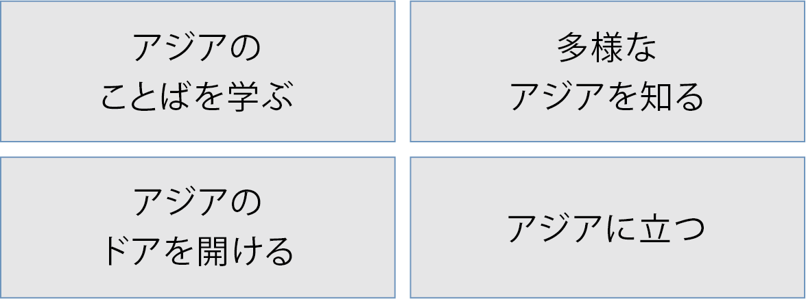 アジアに生きる市民を育てるための試みが本コースの目的です。アジアを学ぶための授業を中心に、実際に国内外のアジアに触れるプログラムも用意。日本社会もまた学びの対象となります。多様性を理解し、互いに違いを認め合う人材を育成します。