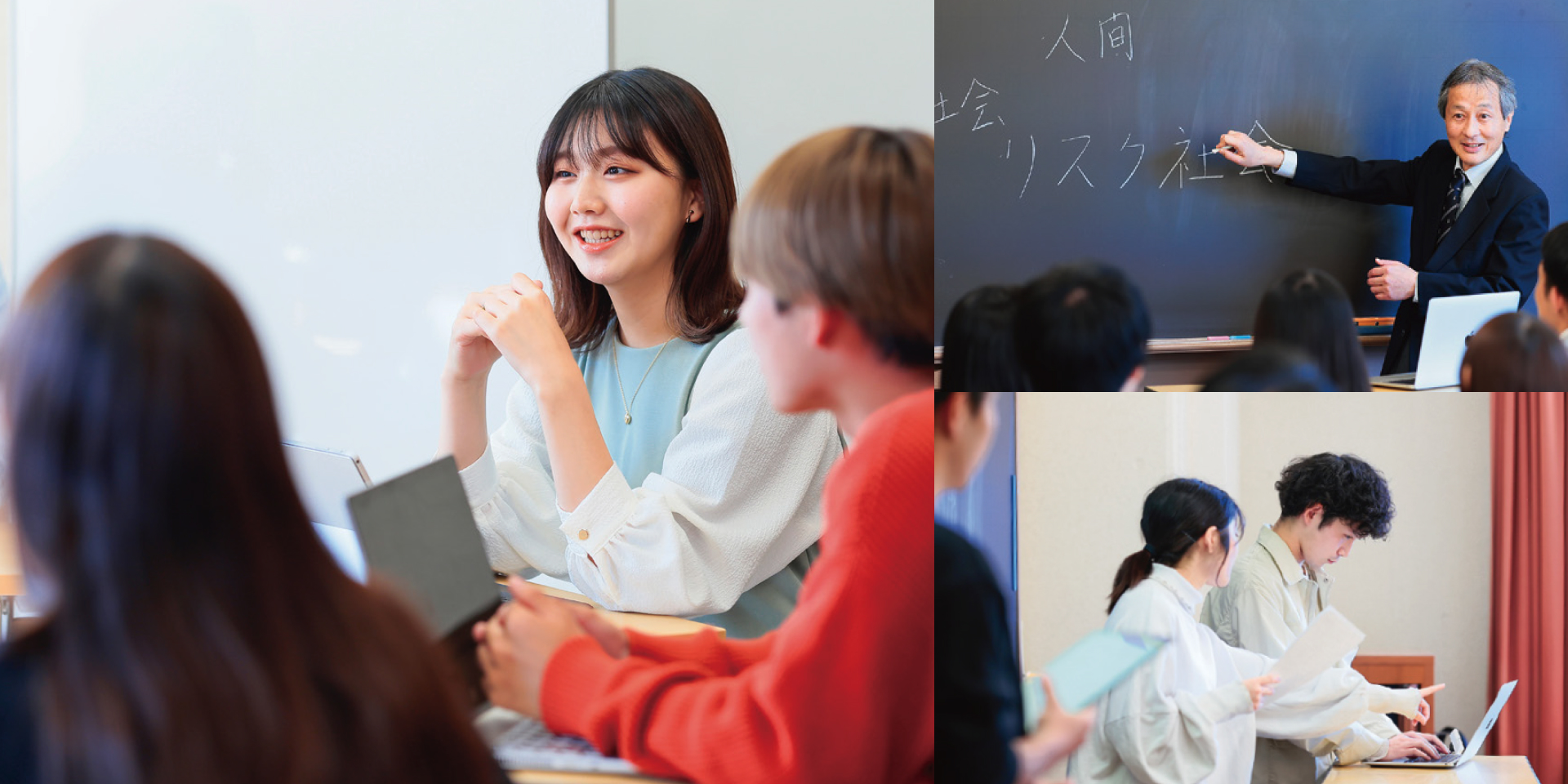 社会学は近代化と工業化の進む19世紀に誕生しました。自由で平等なはずの個人がいかにして社会秩序をつくるのか、また、なぜ貧困や劣悪な都市環境が発生するのかを、実証的に探究する学問が社会学です。それは「Society 5.0」であろうとも変わりません。社会学科では、社会学の理論や社会調査の技法を学ぶことで、社会のしくみや問題を見える化する力を身に付け、確かな根拠に基づいて社会に貢献する力を養います。階層や不平等、教育、ジェンダー、環境、労働、技術、地域、戦争、暴力、消費、社会運動etc.多様な領域の社会学に加え、社会福祉学科の講義の一部も履修することができます。