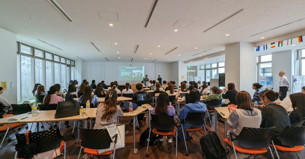 - 日英字幕・翻訳機能付きオンラインツールを利用し、リアルタイムで受講をサポート