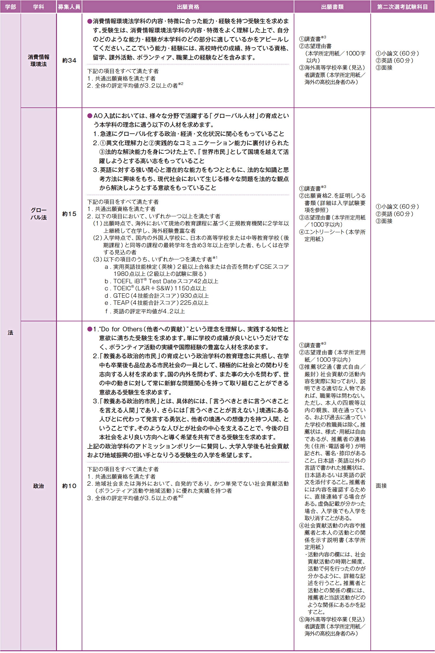 - 海外居住者も対象となる国際キャリア学科AO(A)については、こちらを参照してください。