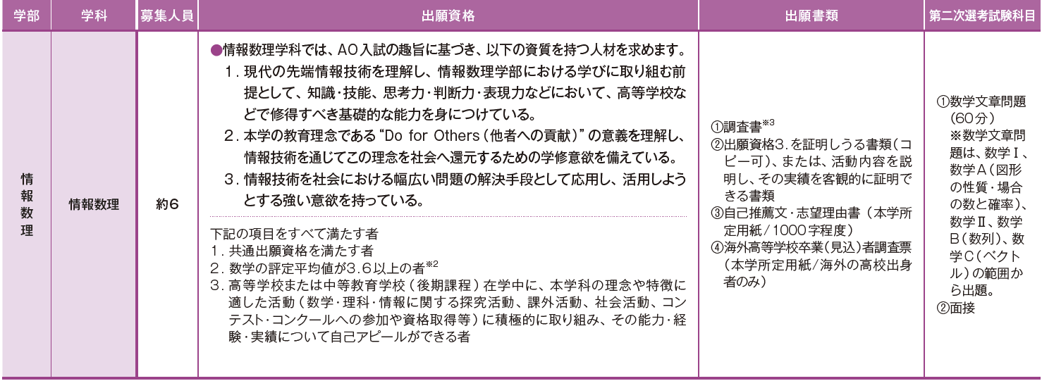 ※3 調査書が発行されない場合は卒業証明書および成績証明書を提出してください。詳細は入学試験要項をご覧ください。