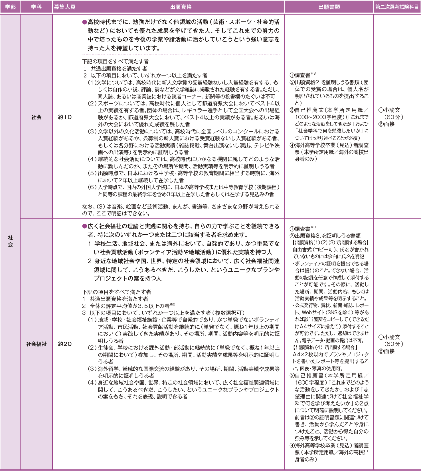 ※2 評定平均値の記載された調査書を提出できない場合は、出願資格の評定平均値相当の学力を有しているかの確認を第一次選考に先駆けて行います。詳細は入学試験要項をご覧ください。