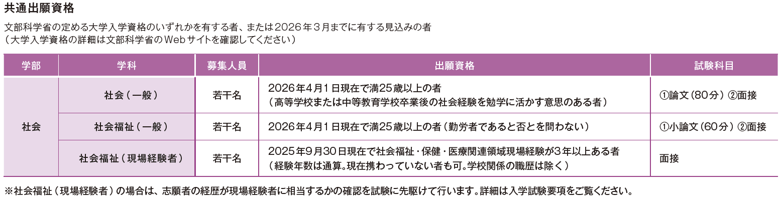 - ※受験にあたっては、必ず2026年度入学試験要項を確認してください。