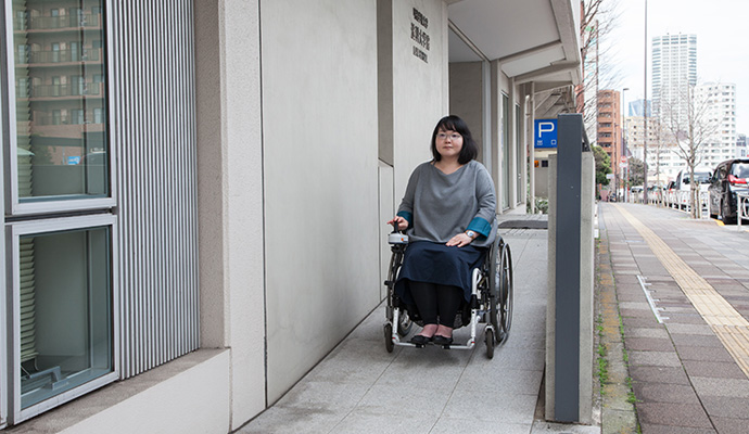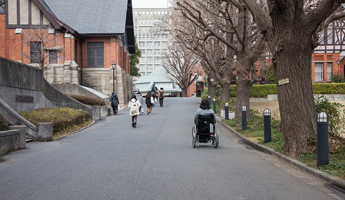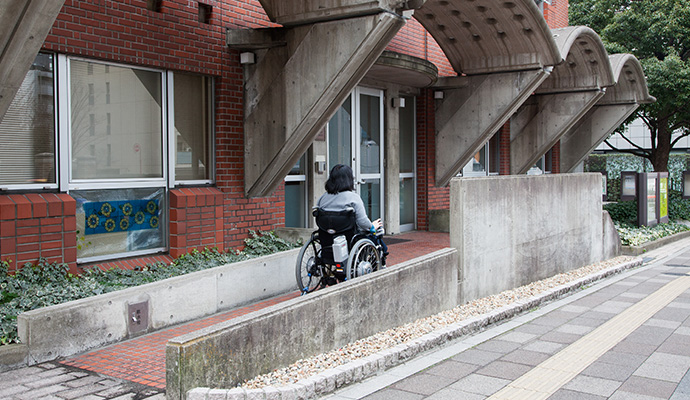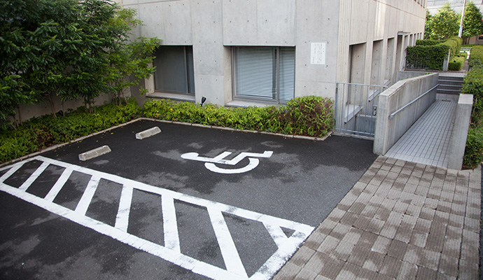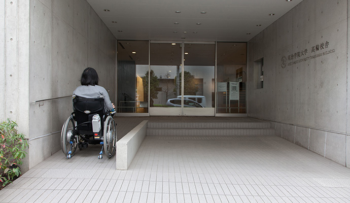 国道一号線沿いのスロープを利用して、10号館1階に入ることができます。