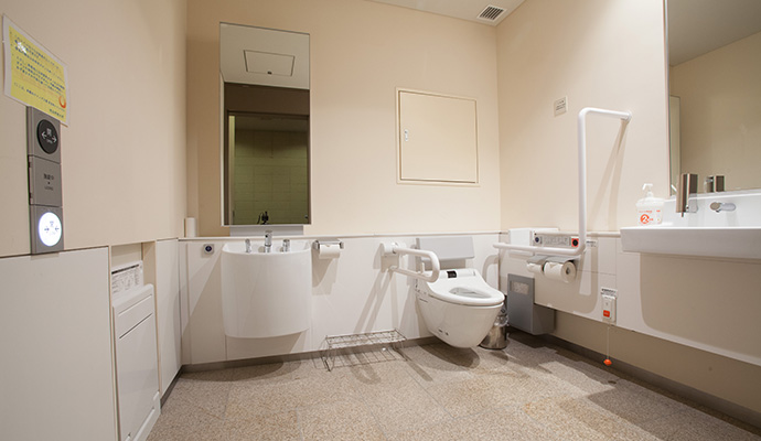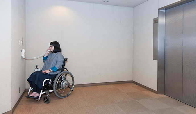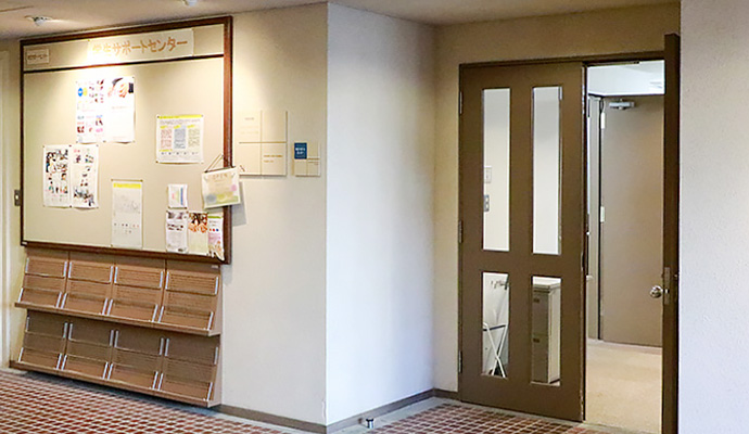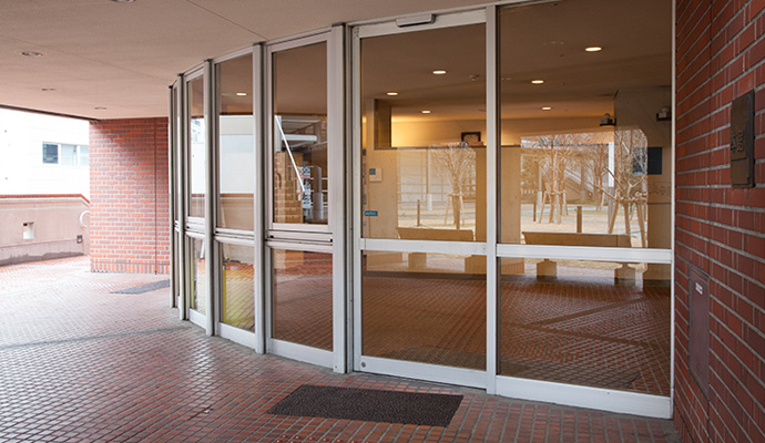 正面入り口には階段があります。ご利用の際は、学生は学生サポートセンターへ、学外の方は催しの主催者まで事前にご連絡ください。