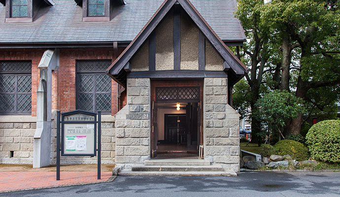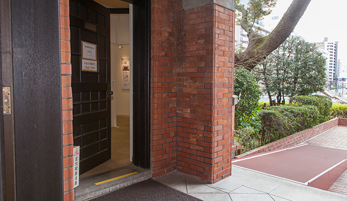 入り口にはスロープがあります。歴史資料館へは、簡易スロープを設置しますので歴史資料館事務室までお問い合わせください。