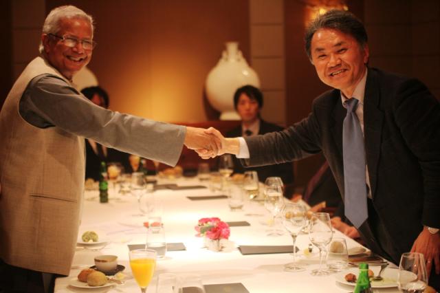 A certain encounter changed my life. It was when I met Dr. Muhammad Yunus. On March 18, 2008, I visited him for the first time at the Grameen Bank headquarters in Bangladesh. The founder of Grameen Bank, Dr. Yunus won the Nobel Peace Prize in 2006. I found him to be a person of warmth, charisma andvirtue. Although we were meeting for the first time, I asked him candidly, “Do you think microfinance can be done in Japan?” (As a type of financing intended for impoverished people, microfinance includes small, unsecured loans.) His unequivocal answer was “It can definitely be done in Japan, too.”