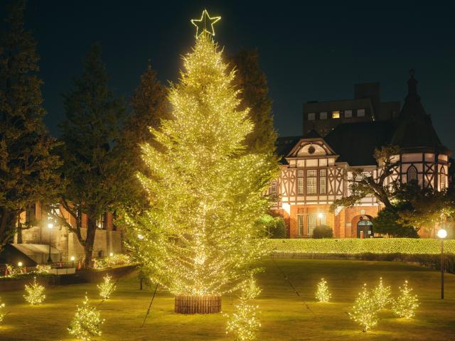 The Christmas season has arrived once again. The Christmas tree on the Shirokane campus has been lit, illuminating the area with its warm glow. During the tree-lighting ceremony, President Murata delivered a Christmas message, and the Meiji Gakuin Senior High School Glee Club entertained us with a performance of musical bells.