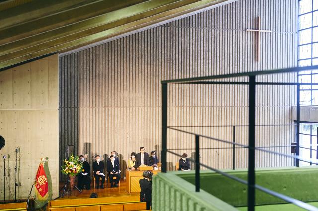 The entrance ceremony for incoming students of the 2020 school year was held on Friday, September 17, on the Yokohama Campus. As an infection prevention measure, that day’s ceremony in the Yokohama Chapel was broadcast live and viewed by participants from their campus classrooms, homes, etc. (On-demand streaming is planned for a later date.) The entrance ceremony had been postponed from last year, when it could not take place due to the COVID-19 situation. Despite the delay of a year and a half, we are extremely pleased to have been able to hold the ceremony. Once again, we would like to extend our heartfelt congratulations to all the incoming students of 2020!