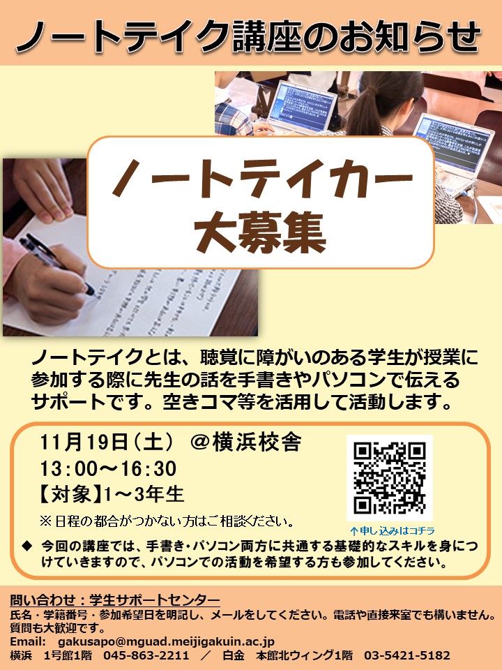 | 【ノートテイカー募集 !】 |