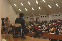 4月19日(木)10:50-12:20、本学3201教室において天野祐吉氏、佐藤可士和氏 客員教授就任記念授業が行なわれました。当日は「現代世界と人間」(原宏之准教授担当)の履修者を中心に約200名の学生が出席し、熱心に聴講しました。 「大学を語る、大学が変わる」というテーマで、まず原准教授が現代世界におけるコミュニケーションの欠落を指摘。それを受け、雑誌『広告批評』の発行人でもある天野祐吉客員教授は、広告という観点から人間が行なうコミュニケーション活動の根幹を解き明かし、あわせて広告が必然的に“イカサマ”を孕むことにも注意を喚起しつつ、世の中に流布される情報をよく読み取りその中の虚実を見分ける目の必要を、学生に対し真剣に説きました。 一方、アートディレクターとして活躍中の佐藤可士和客員教授は、世の中の問題の多くはコミュニケーションの障害であると指摘した上で、みずからの仕事の快感をそういったコミュニケーション障害を鮮やかに解決することにあると説明。手がけた様々な企業の広告や本学ブランディングプロジェクトの舞台裏を明かしながら、プロフェッショナルの仕事の中に現れるコミュニケーションの極意を具体的に教授しました。 これまでも大学の講演会などではたびたび話をされたお二人ですが、当日はそれとはやや趣を異にして、まさに客員教授として登壇。19世紀以降21世紀までを見通した文明論的枠組みの中で、広告とデザインとコミュニケーションの問題を自在に論じました。 対談のようなくつろいだ雰囲気の中で、時おり学生に対する具体的なアドバイスなども交えながら行なわれた授業は、就任記念にふさわしい刺激的かつ充実したものでした。 |