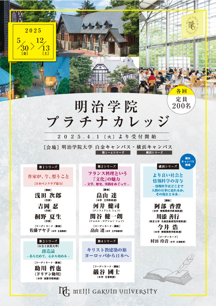 本学社会連携課企画による生涯学習講座「明治学院プラチナカレッジ」にてフランス料理についての講座が開催されます!