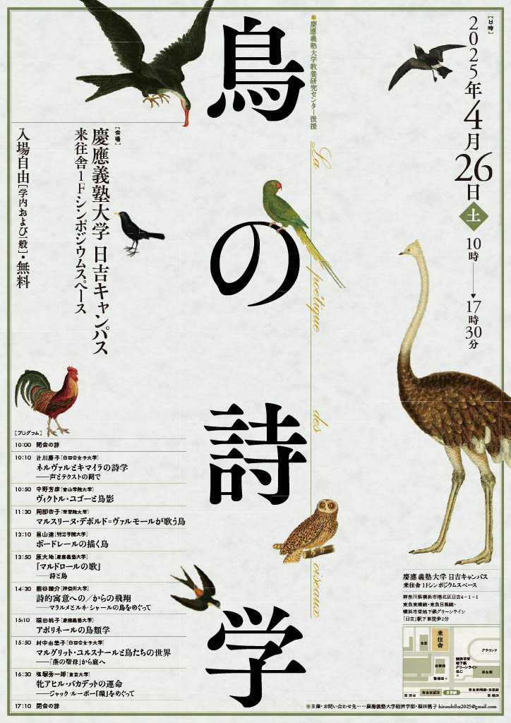タイトルは「ボードレールの描く鳥」で古典作品との関係についてお話されます。