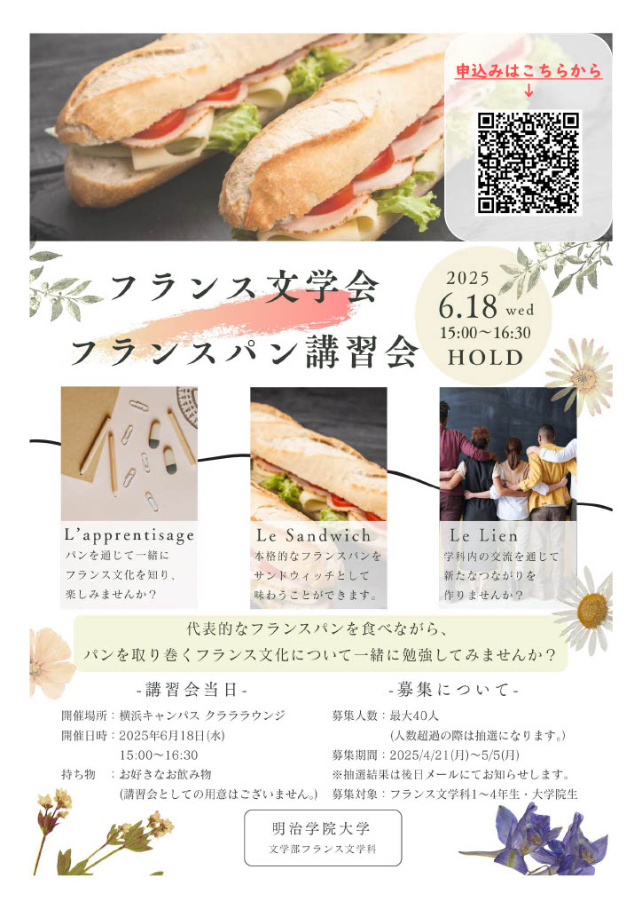 横浜キャンパスにて、フランス文学会のイベント「フランスパン講習会」を開催します!