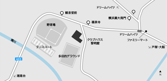 横浜校舎より交通機関を乗り継いで40 - 50分の所に位置し、明治学院の総合グラウンドとして開設されました。野球場・多目的グラウンド・テニスコート(クレー4面・人工芝4面)および運動部やゼミで合宿可能な施設(黎明館