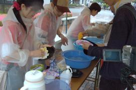 ゴミの分別回収はもちろんのこと、模擬店で使われる食器はリユースできるプラスティック容器を使い、
