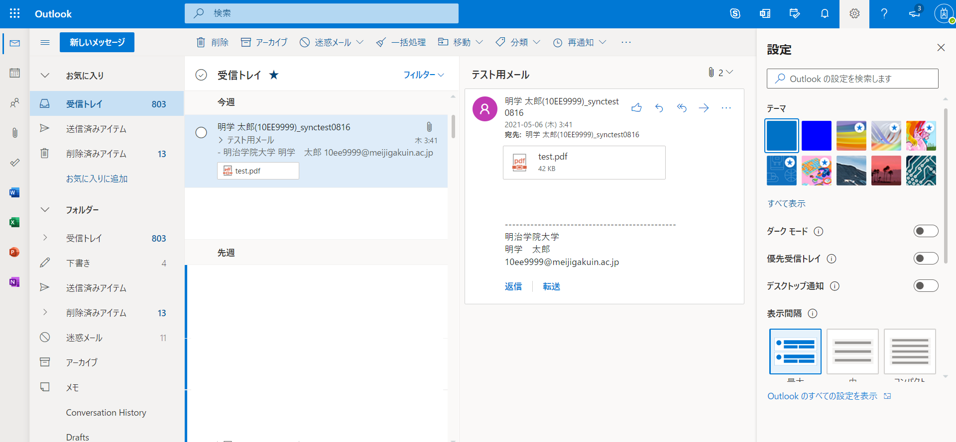 1.画面右上の歯車型アイコンをクリックし、Outlookの全ての設定を表示をクリックします。