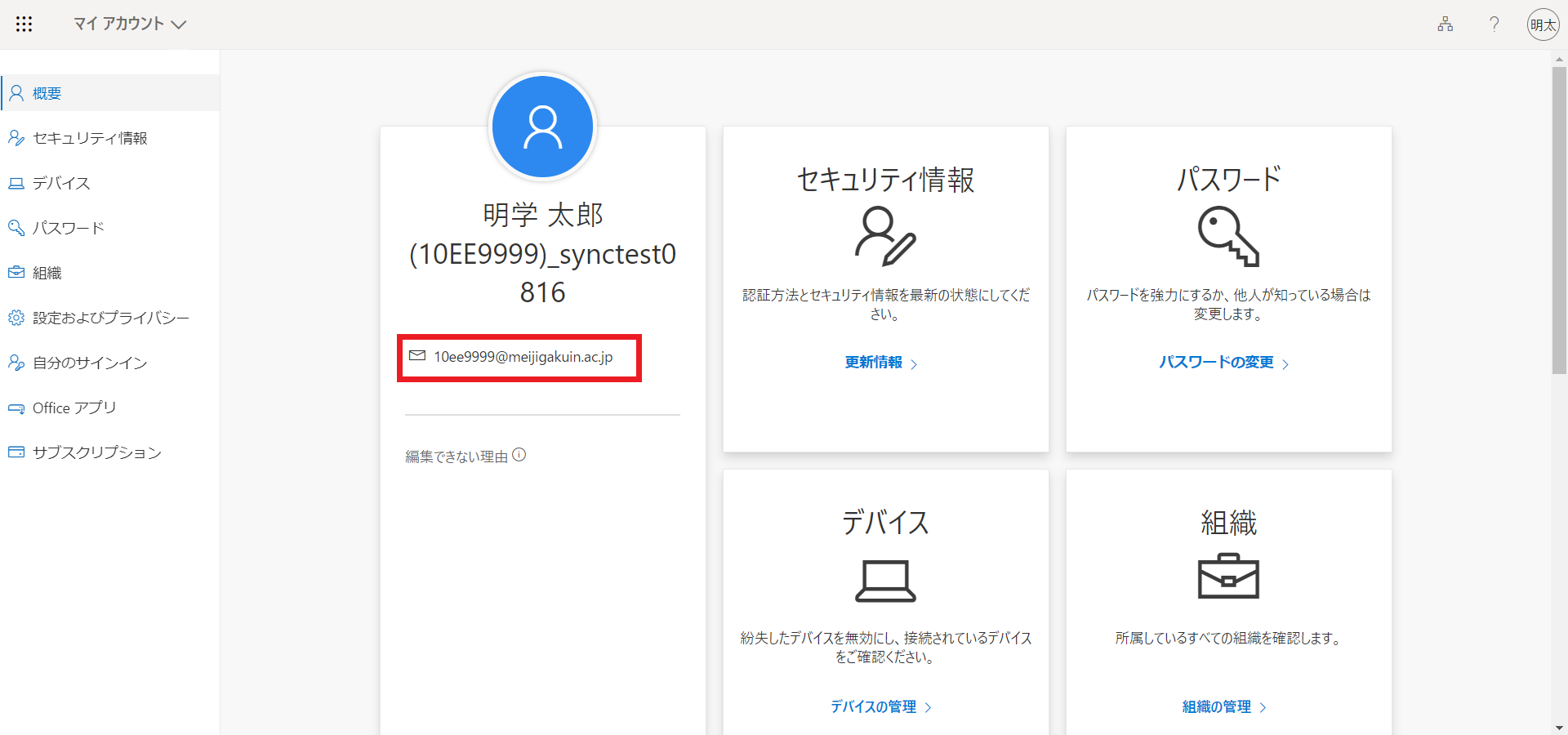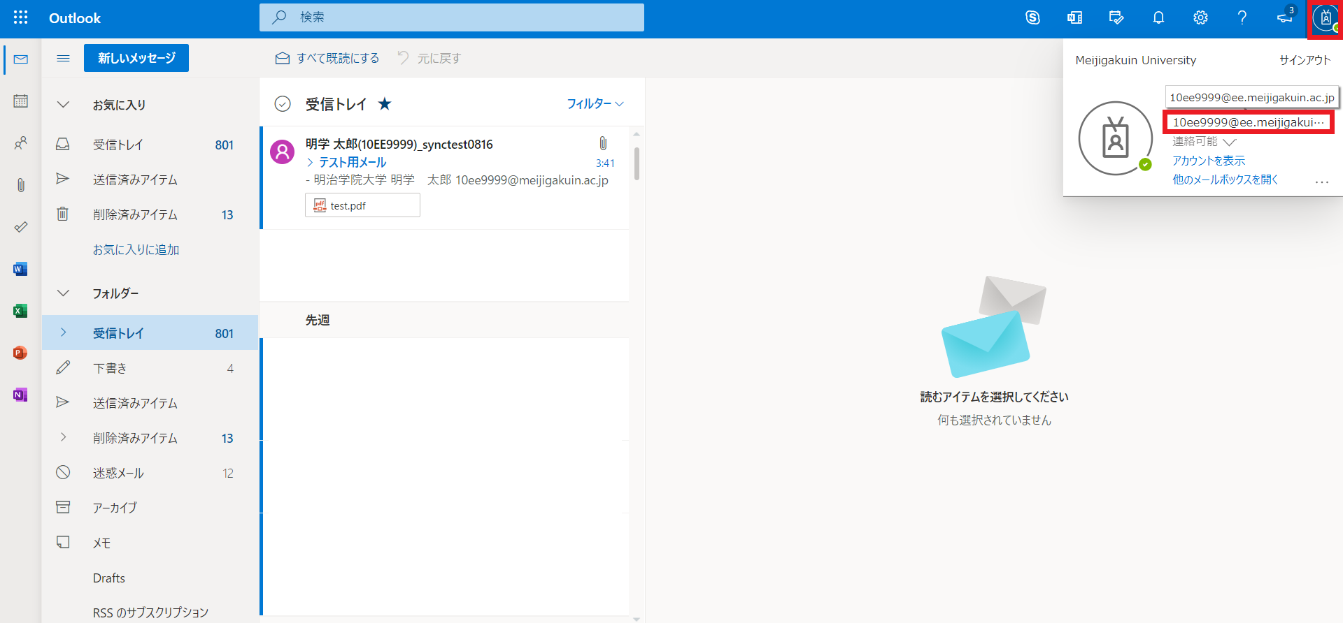2.文字が途切れてしまっている場合は、1.内に展開された枠内のアカウント表示を