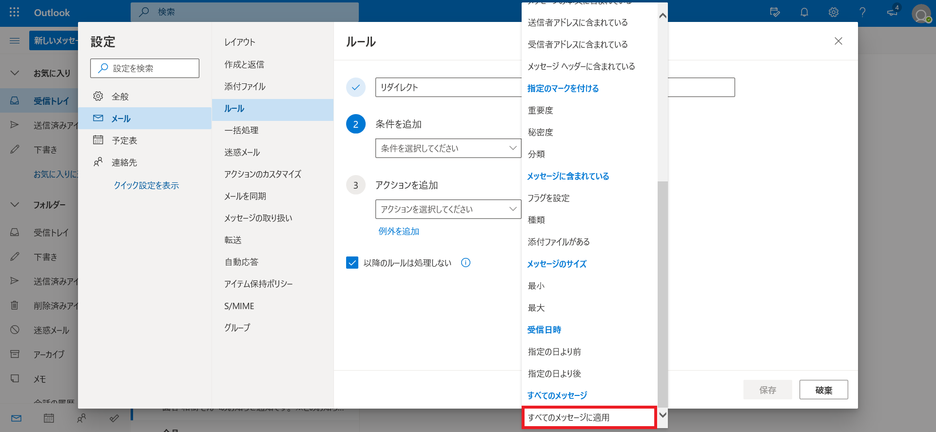 表示された選択肢の一番下「全てのメッセージに適用」を選択します。