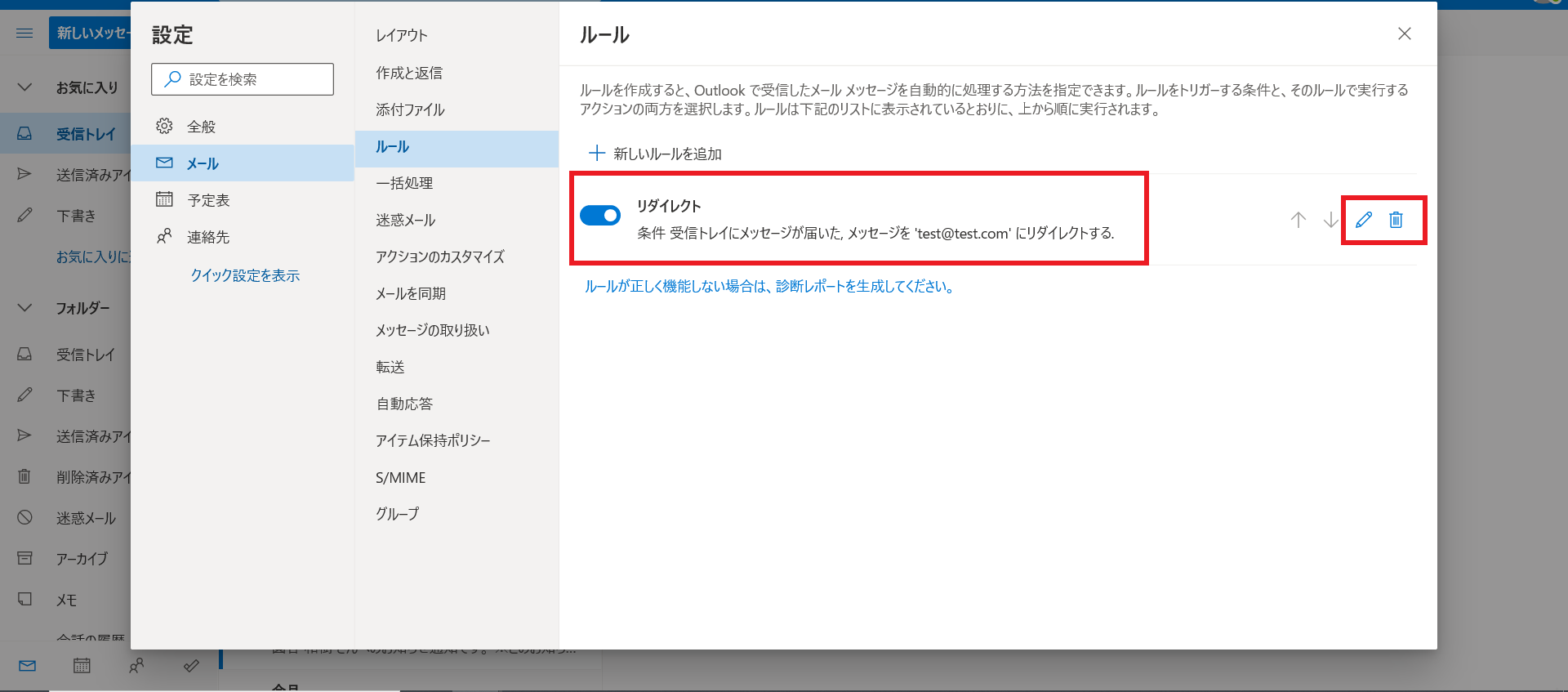 ルール内容を編集したい場合は、ルールの右側、ペン🖊マークを選択し編集できます。