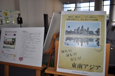 国際学部の学生が2012年2月8日~25日の期間、タイ・カンボジアで行った校外実習中に撮影した写真を、紹介・報告した文章とともに展示しています。