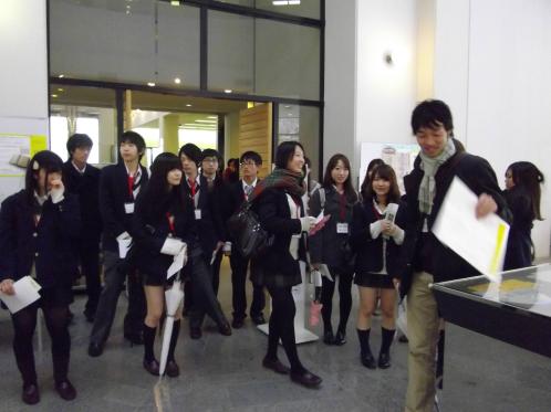 2日目はキャンパスツアーの中で図書館見学も行い、約40分間大学生が説明をしながら図書館内を探検しました。