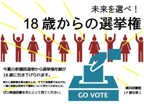【横浜校舎図書館】特設展示「未来を選べ! 18歳からの選挙権」スタートしました!