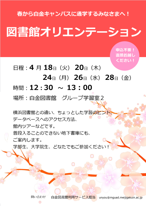 【白金校舎図書館】オリエンテーションを開催します