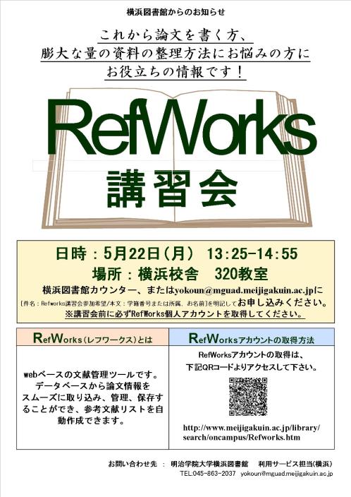 【横浜校舎図書館】RefWorks講習会のお知らせ