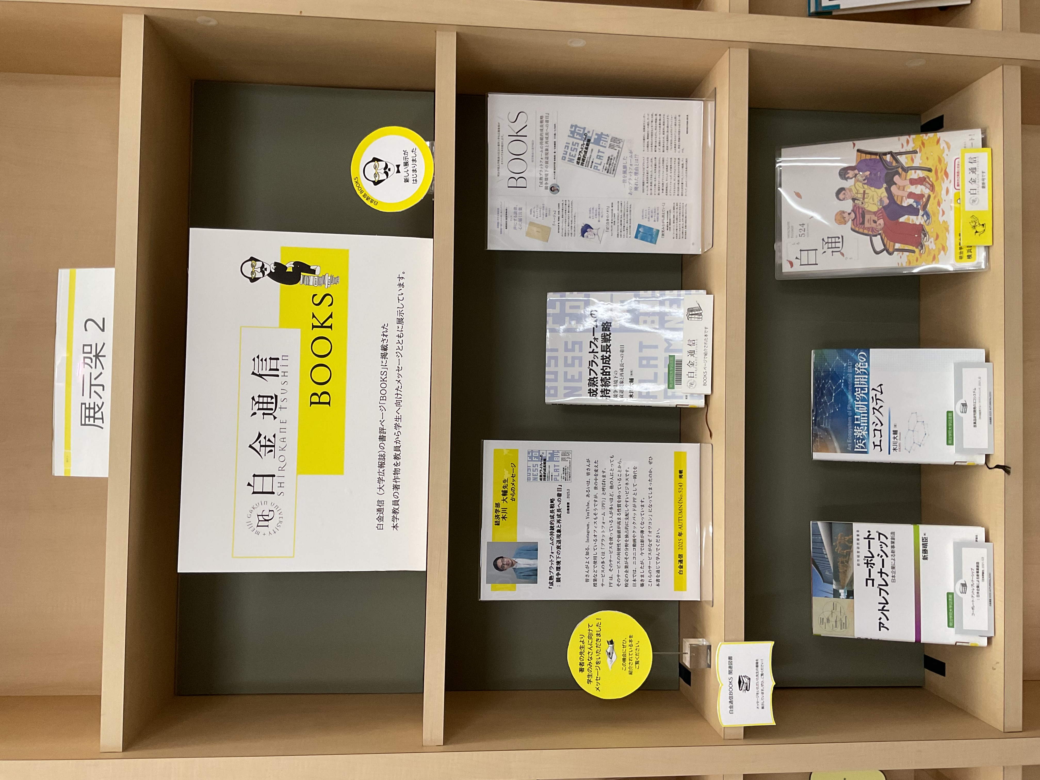 【横浜校舎図書館】『白金通信』BOOKS展示に新しいメッセージが届きました!