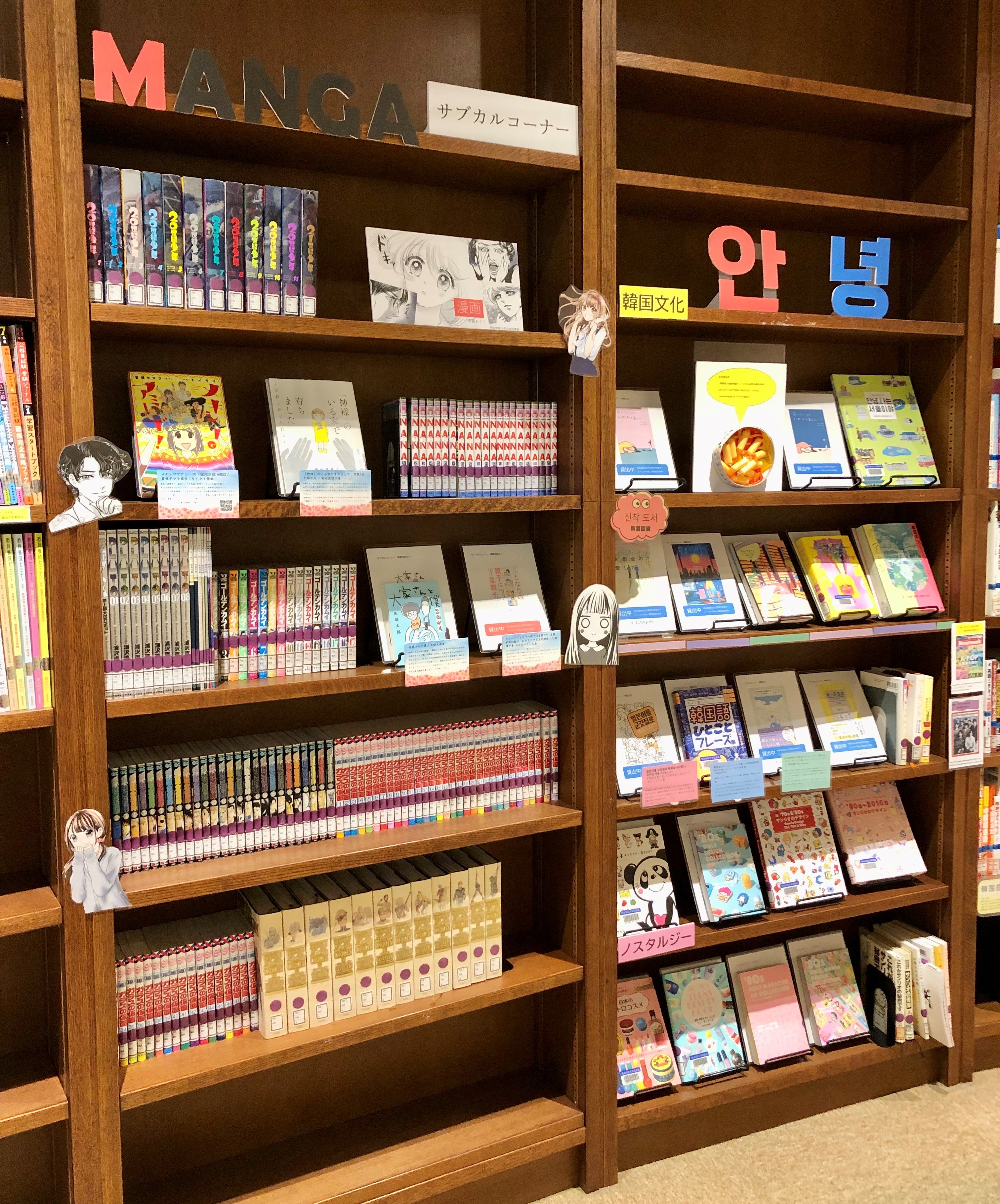 「韓国文化」「ノスタルジー」「漫画を読もう!」といったテーマで、気軽に読める本を集めています。